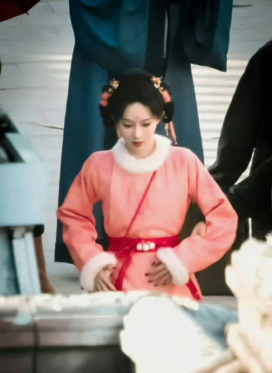 造型与角色的高度契合,是孟子义此次路透引发热议的关键。从路透图来看,她所饰演的角色应当是一位性格活泼、娇俏灵动的贵族少女,而粉色古装与双发髻的造型设计,恰好精准地捕捉到了角色的核心特质。粉色本身就与“少女”“娇俏”等关键词紧密相连,双发髻则进一步强化了角色的纯真与灵动,再加上孟子义双手叉腰时微微嘟嘴的神态,将角色的娇憨可爱展现得淋漓尽致。这种“造型为角色服务”的呈现方式,让观众能够快速get到角色的性格特点,从而对角色产生浓厚的兴趣与期待。