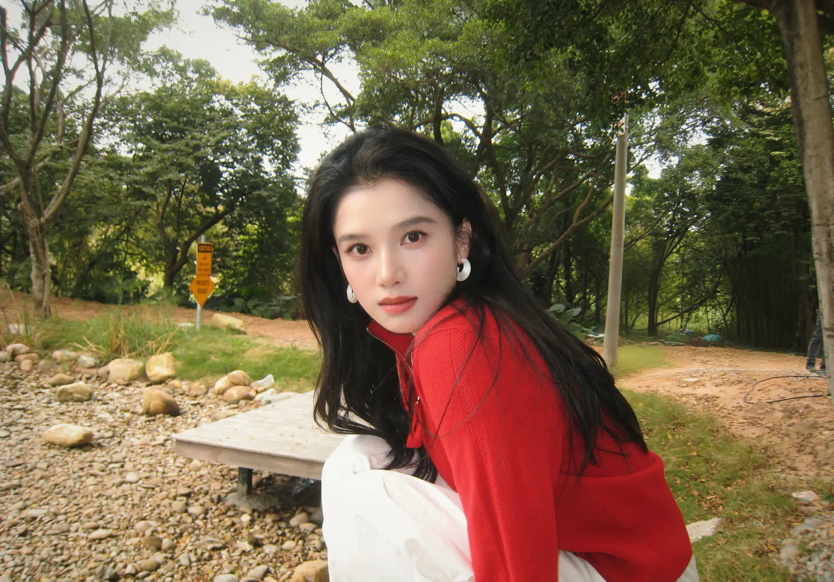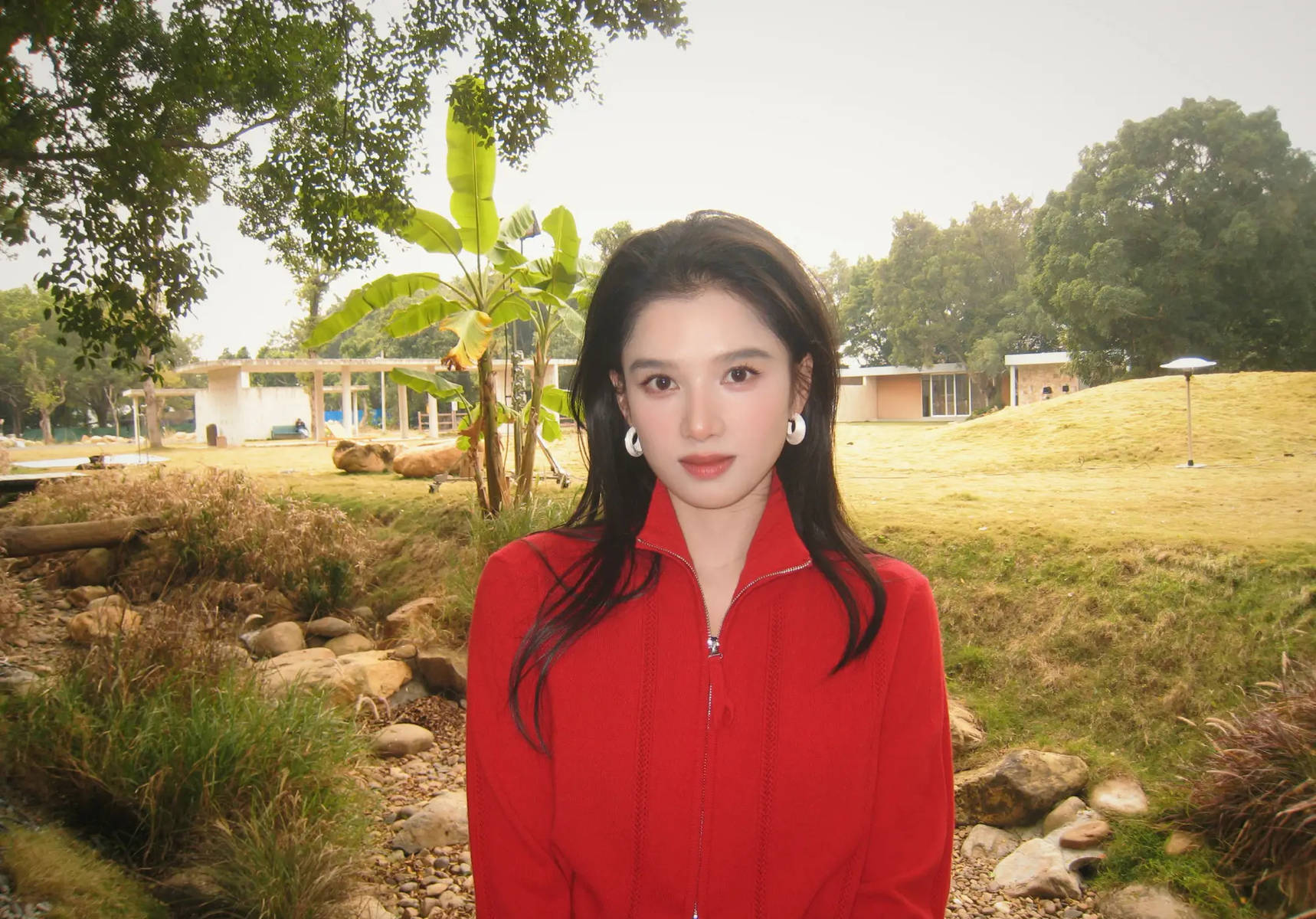 其次,造型与自然环境的完美融合,让治愈感更加强烈。红色上衣与白色长裤的搭配,既充满了青春活力,又与自然环境形成了和谐的视觉效果。红色的热烈与绿色的自然、白色的纯净相互映衬,构成了一幅极具美感的画面;宽松舒适的穿搭也让她在自然中更加自在,能够尽情享受户外时光。这种“人景合一”的状态,让照片不仅展现了人的美感,更传递出自然的静谧与美好。网友们纷纷留言:“被张婧仪的笑容治愈了,瞬间觉得心情都变好了”“这才是户外照该有的样子,自然又美好”“红白搭配太清新了,已经get同款穿搭灵感”。