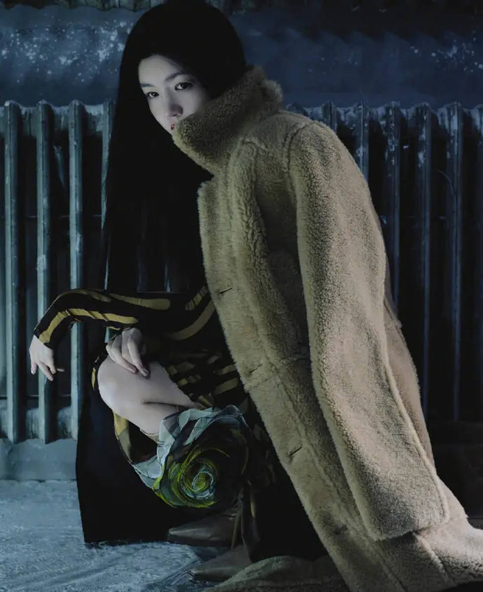 妆容与造型的精准适配,让整体风格更具完整性。陈妍希采用了深邃冷艳的暗黑系妆容,底妆通透服帖,呈现出细腻的哑光质感,与暗黑风的冷冽基调相契合。眼妆是妆容的核心,深邃的大地色眼影叠加黑色眼线,眼尾微微上扬并拉长,自带魅惑气场,睫毛纤长浓密,放大双眼的同时增添了几分神秘感;眉妆采用平直眉型,线条利落干练,弱化了往日的温柔感,强化了御姐的冷艳气质;唇妆选用复古正红色,哑光质地凸显高级感,与黑裙、皮草形成色彩呼应,让整体造型从色彩到风格形成完整闭环。妆容整体精致却不厚重,既突出了五官的立体度,又与服装造型完美融合,让冷艳御姐的形象更显立体。