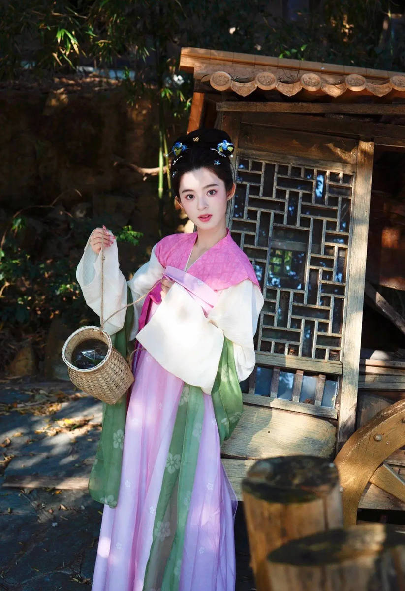 不同于以往明星汉服造型的华丽繁复,黄杨钿甜这组踏青美照中的汉服,走的是简约清新路线,却更具感染力,完美贴合踏青赏春的轻松松弛氛围。粉白相间的配色,如同春日里的暖阳与白雪,温柔又治愈,没有浓烈的色彩堆砌,却能瞬间抓住眼球,既凸显了汉服的古典雅致,又展现了黄杨钿甜的少女气息,两种风格相互融合,碰撞出不一样的火花,让她看起来如同从古典画卷中走出的春日少女,温婉又灵动。
