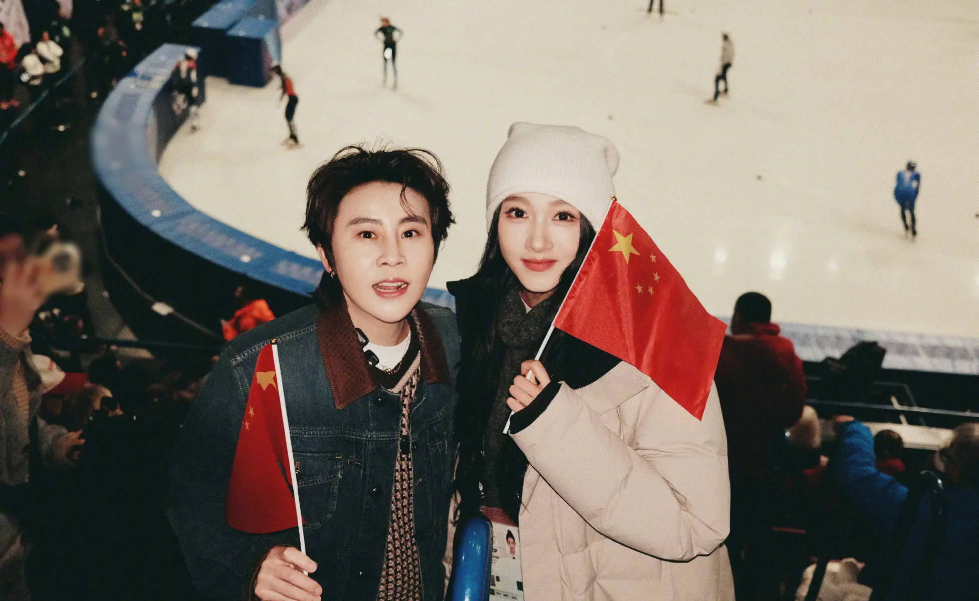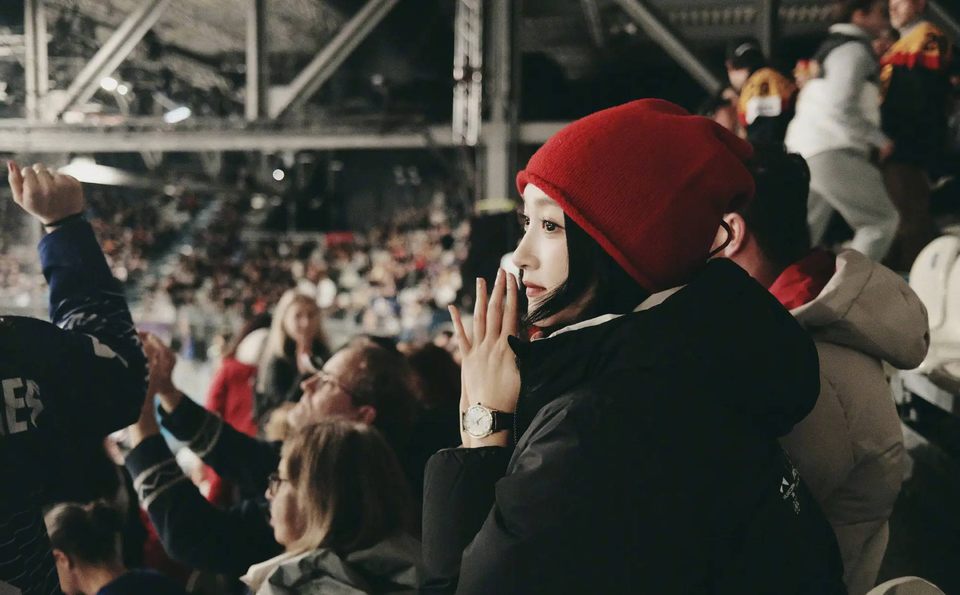 除了穿搭的亮眼表现,关晓彤的观赛姿态也为整体造型加分不少。她手持中国国旗,身姿挺拔却不僵硬,神情专注却不拘谨,双手合十观赛时,眉眼间满是认真,既有对冰雪运动的热爱,也有对中国健儿的期盼;偶尔举起手机记录赛场瞬间,偶尔为选手们呐喊加油,每一个动作都自然流畅,没有刻意摆拍的生硬感,尽显松弛自在的状态。这种“不刻意、不做作”的穿搭与姿态,完美展现了她的时尚表现力,也让大家看到了她私下随性真实的一面——既能在聚光灯下绽放光芒,也能在普通赛场自在随性,这种反差感,让她更具独特魅力。