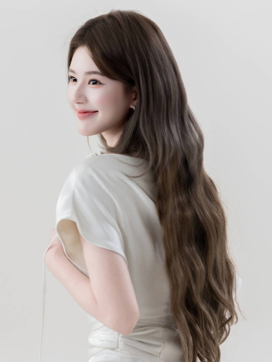 一头波浪长发,为整体造型注入了灵动与妩媚。长发自然卷曲,弧度柔和,发丝柔顺有光泽,自然垂落在肩头,偶尔几缕碎发自然垂落脸颊,修饰脸型的同时,更添几分慵懒随性的美感。波浪长发的灵动与白裙的纯粹形成完美呼应,一柔一媚,既避免了白裙的单调,又打破了波浪长发的妩媚感,让整体造型既有清纯的底色,又有妩媚的点缀,氛围感直接拉满。