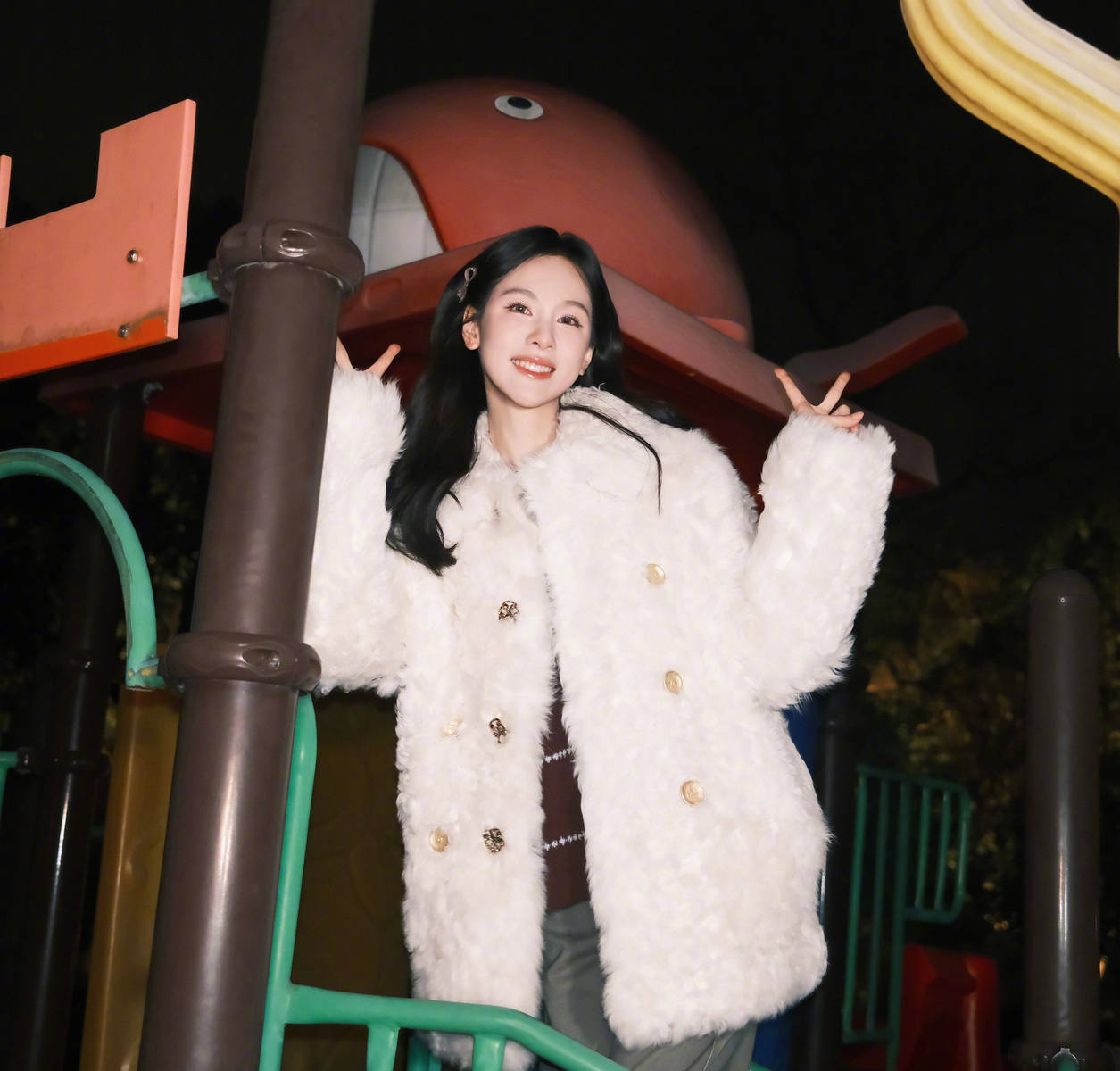 近日,陈都灵的一组日常随拍悄然走红,凭借简约的造型与灵动的姿态,收获了全网赞誉。照片中,她身穿白色外套,发间别着精致发卡,在滑梯旁肆意玩耍,双手比耶、笑容清甜,娇俏灵动的模样,瞬间解锁少女感天花板,让大众看到了她清冷气质背后的可爱一面。这组随拍没有华丽的造型堆砌,没有复杂的场景搭建,仅凭借日常穿搭与自然姿态,便将陈都灵的少女感展现得一览无余,治愈感拉满。