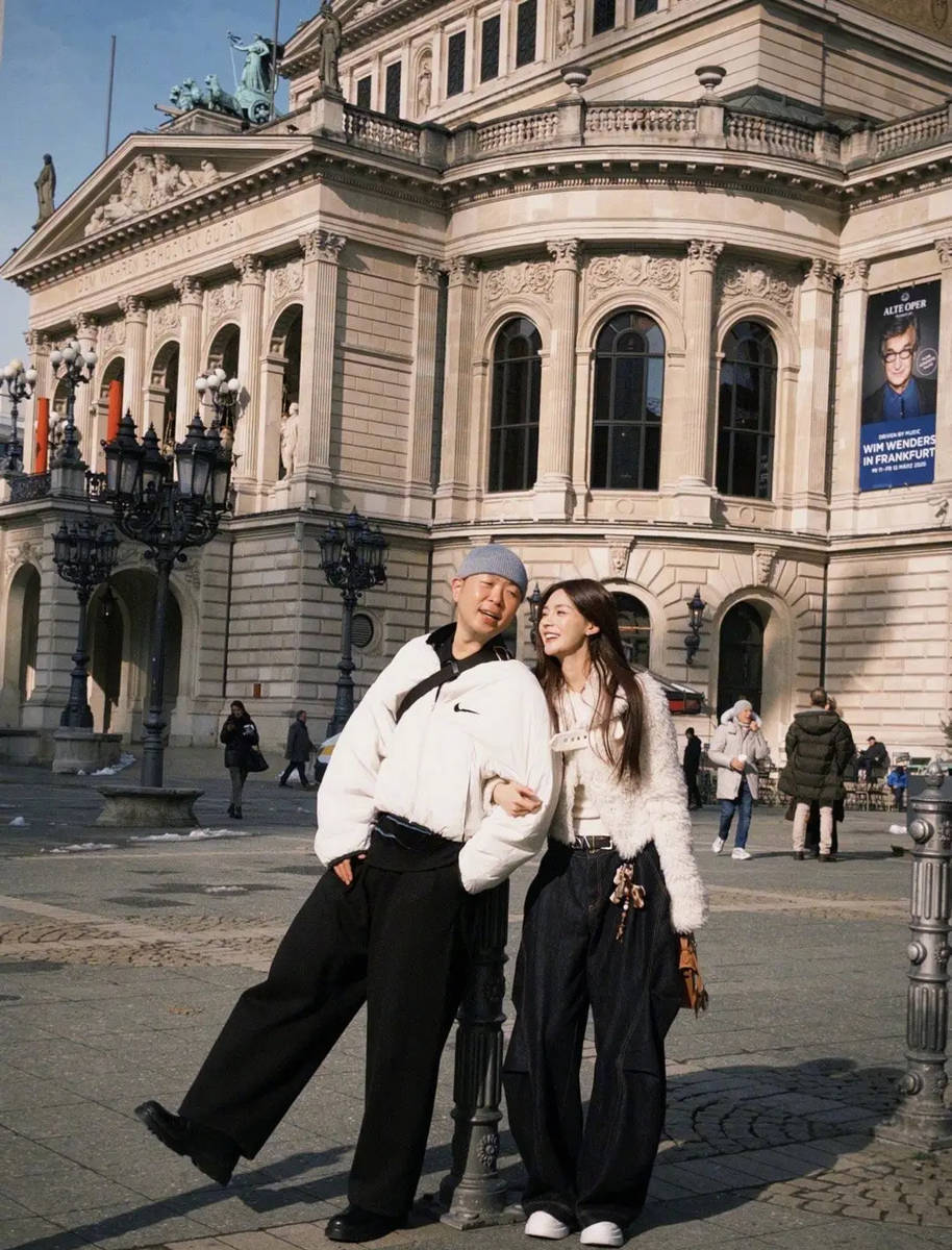 沈梦辰分享的随拍中,没有昂贵的奢侈品加持,没有刻意营造的浪漫场景,全是最真实的旅行日常。两人行走在德国的街头,穿梭在欧式建筑之间,沈梦辰时而对着镜头比耶微笑,时而调皮地挽着杜海涛的胳膊撒娇,杜海涛则始终陪伴在侧,眼神温柔地注视着她,偶尔抬手轻揉她的头发,每一个动作都充满了宠溺。有一张照片格外动人,两人坐在街头的长椅上,沈梦辰靠在杜海涛怀里,两人一起看向远方,阳光透过树叶洒在他们身上,岁月静好,温柔治愈。