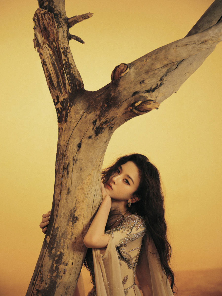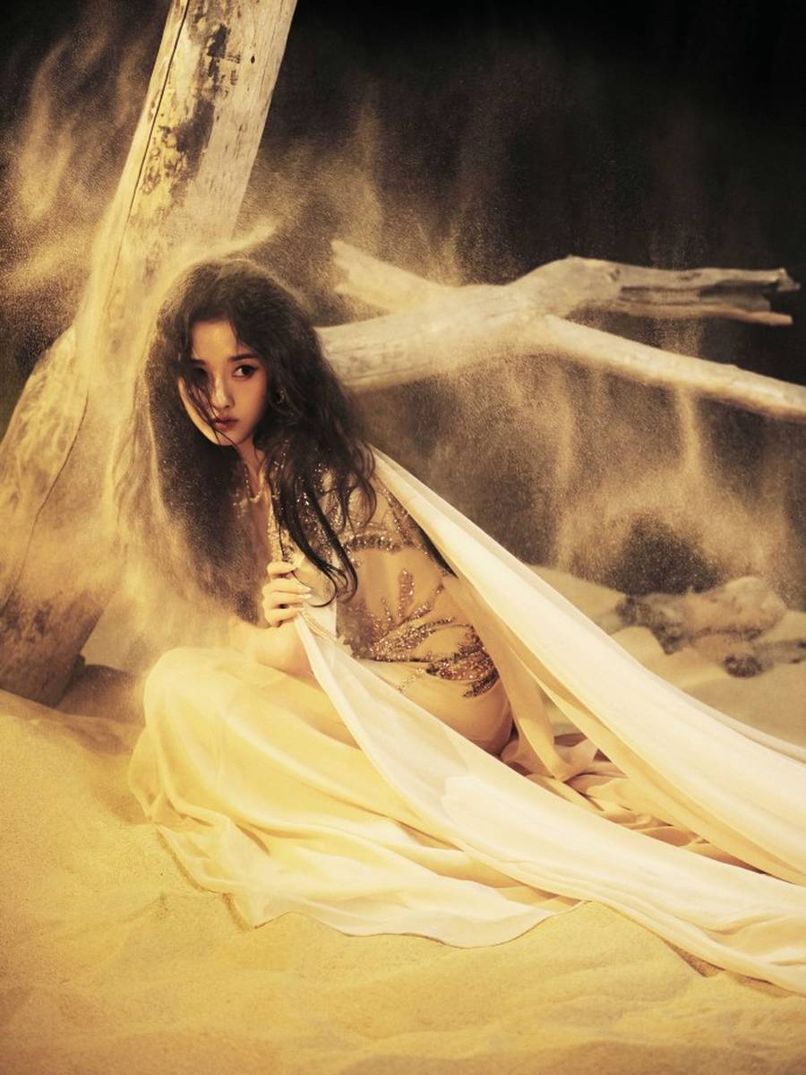 沙漠的苍茫辽阔,为这组写真奠定了独特的基调,也让宋祖儿的造型更具张力。黄沙漫天的背景,没有多余的装饰,却自带苍凉而大气的气质,而宋祖儿身着的深V鎏金纱裙,宛如沙漠中的一抹鎏光,瞬间打破了沙漠的单调与苍凉。鎏金面料选用细腻的材质,在光线的照射下,呈现出不同的光泽感,温柔而耀眼,与漫天黄沙相互映衬,既凸显了沙漠的辽阔,又彰显了造型的明艳,让宋祖儿在苍茫沙漠中,成为最耀眼的存在。