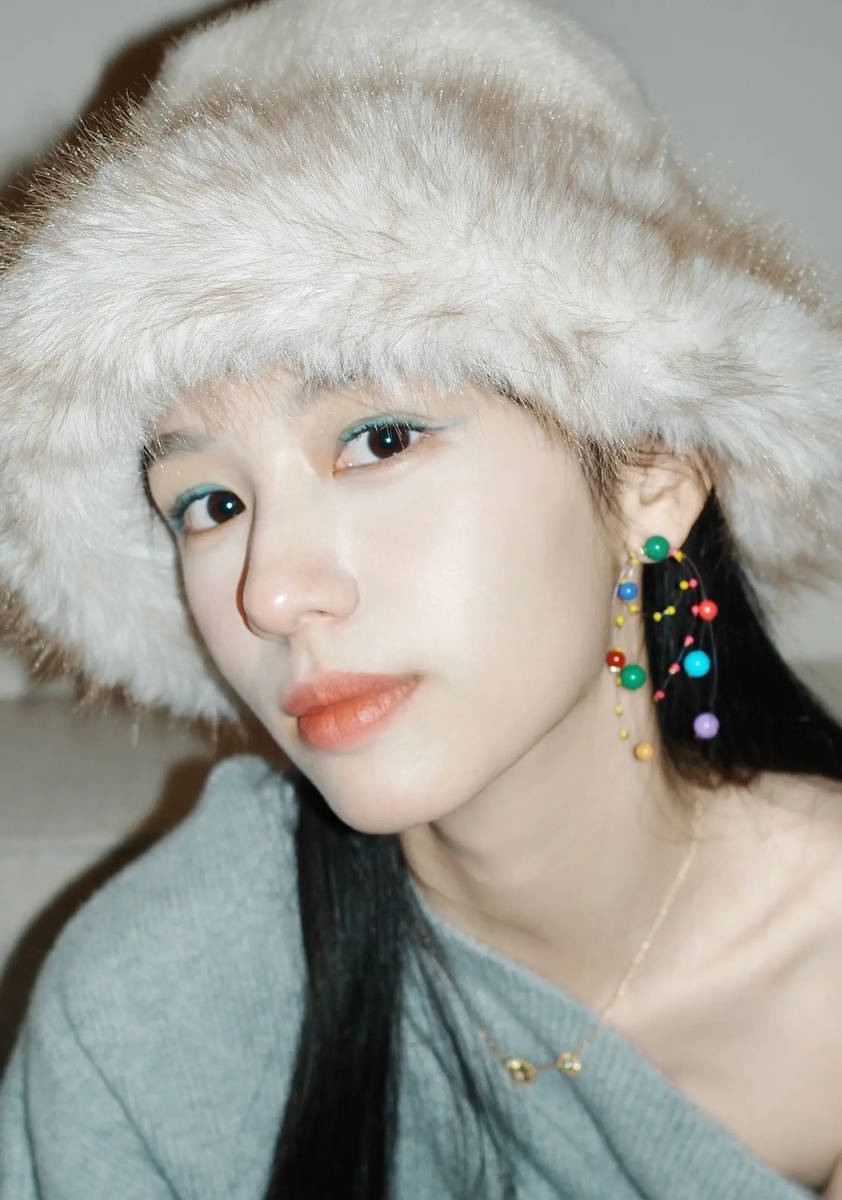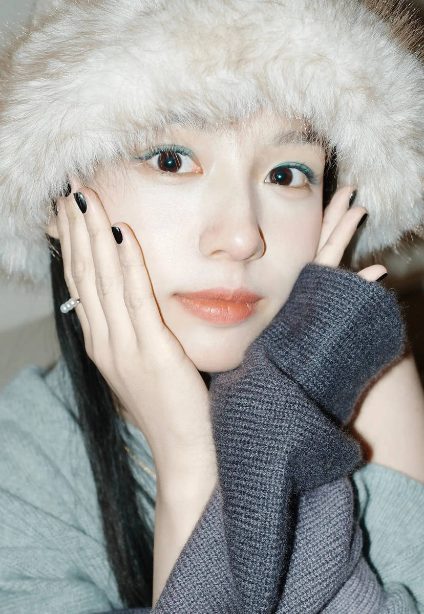 不同于娱乐圈常见的浓妆艳抹,周也这组怼脸拍的妆容主打“清新自然、松弛随性”,而蓝色眼线则成为整个妆容的点睛之笔。她选用的蓝色温柔又清爽,不是饱和度极高的亮蓝,而是带有一丝灰调的莫兰迪蓝,柔和不刺眼,适配多种肤色,也更能凸显少女的灵动气质。眼线的线条细腻流畅,从眼头自然延伸,眼尾微微上扬,没有夸张的拉长,也没有繁杂的修饰,简单几笔就勾勒出灵动有神的双眼,让眼神看起来更加澄澈明亮。