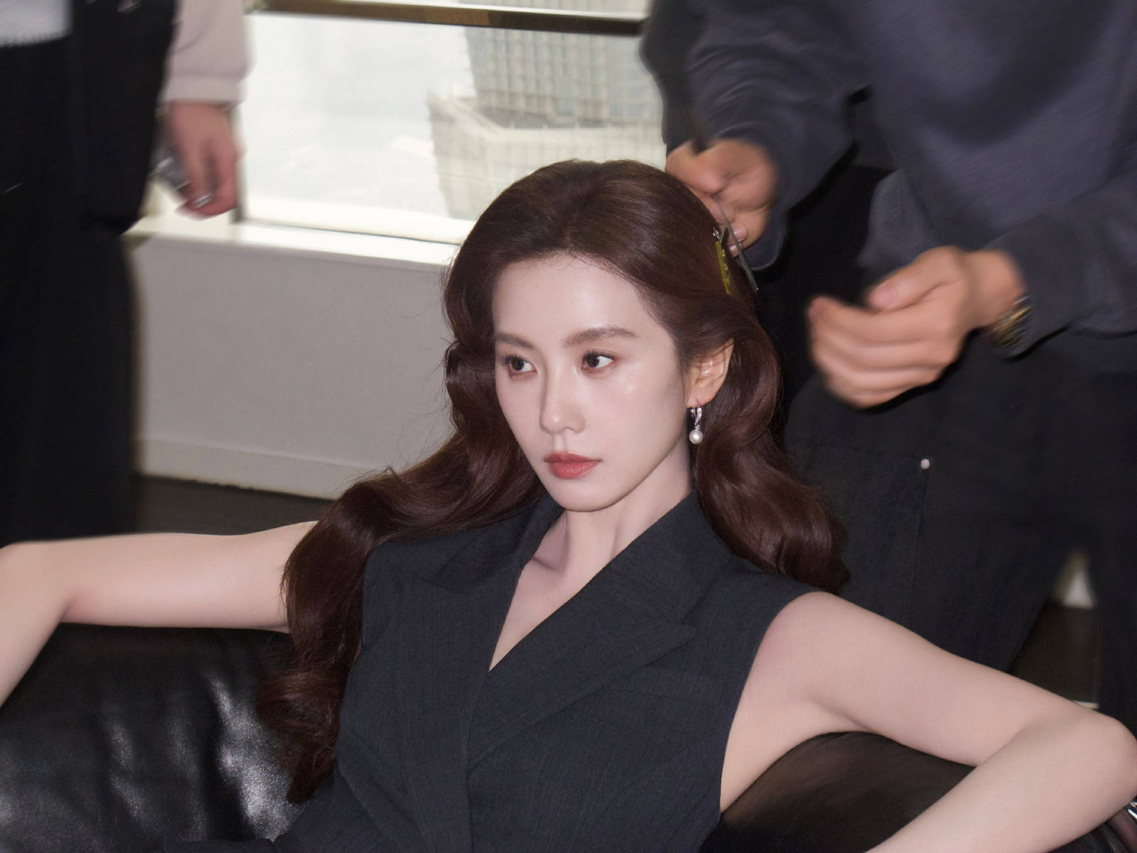 妆容与配饰的搭配,完美契合浅蓝裙的温柔气质,同时又增添了几分大气感。红唇依旧是点睛之笔,淡淡的红唇没有过于浓烈的攻击性,却能提升气色,与浅蓝裙形成温柔的撞色,既亮眼又和谐,让整体造型变得更加生动鲜活。眉形柔和自然,眼神清澈温柔,没有浓重的妆容修饰,尽显原生之美,与浅蓝裙的清新气质高度契合。